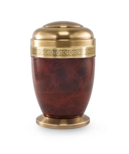280 fém urna gyökérfa hatású felülettel, sárgaréz díszítéssel, fedéllel és talppal temetéshez