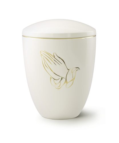 6330BH-G – Ceramica urna világos elefántcsont színben, aranyszínű imádkozó kéz motívummal