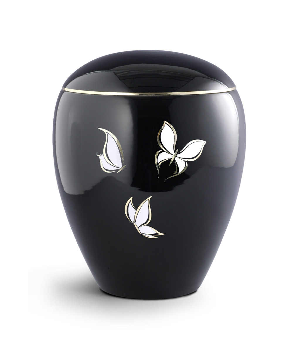 6541 – Emilia Ceramica urna fényes fekete színben, pillangó motívummal