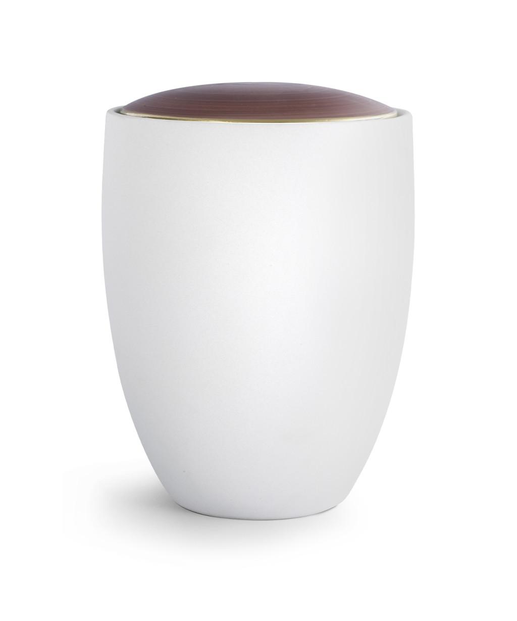 Florentina 6600 fehér kerámia urna gesztenyebarna tetővel és arany szegéllyel