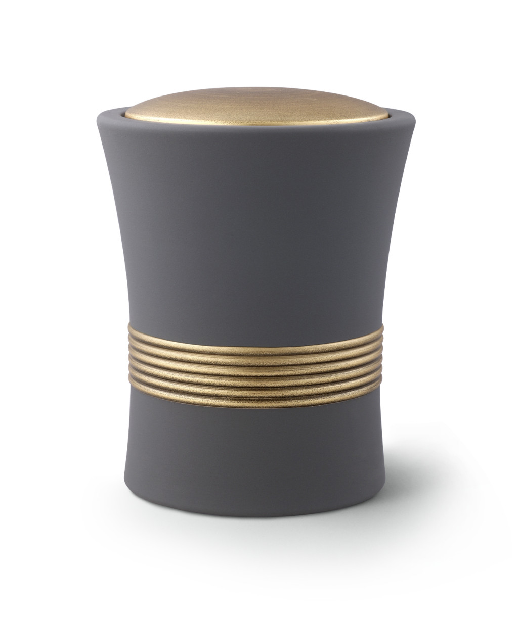6977 kerámia urna bársonyos grafitszürke felülettel és kézzel festett antik arany díszítéssel temetéshez