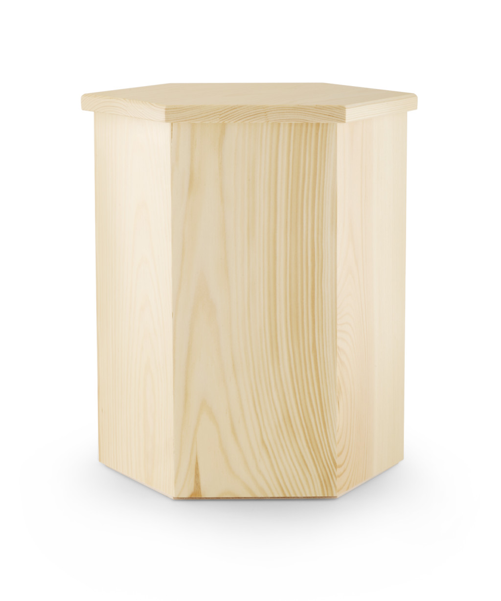 980OE viaszolt felületű, hatszögletű puhafából készült urna sárgás árnyalatban