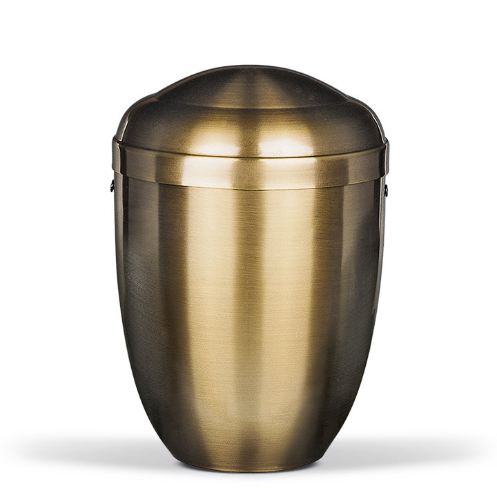 Arany színű, szálcsiszolt felületű réz urna. Letisztult megjelenés, felületén egyenletes, finom csiszolási struktúra látható.