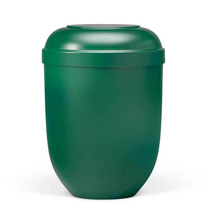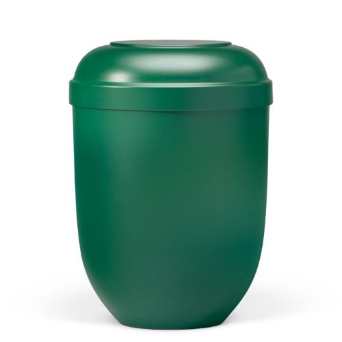 Letisztult formájú, visszafogott megjelenésű urna fenyőzöld színben. Természetes alapanyagból készült, egyszerű kialakítással.